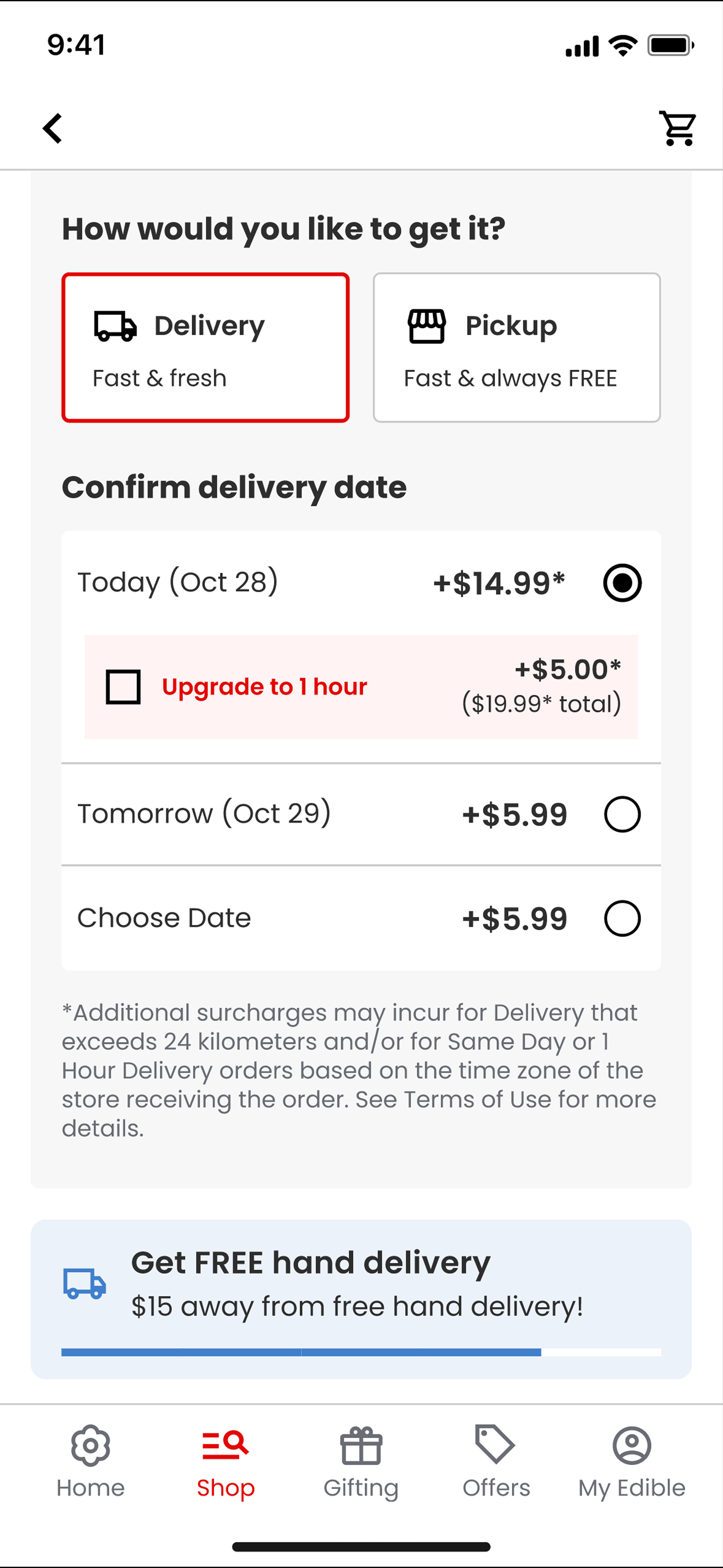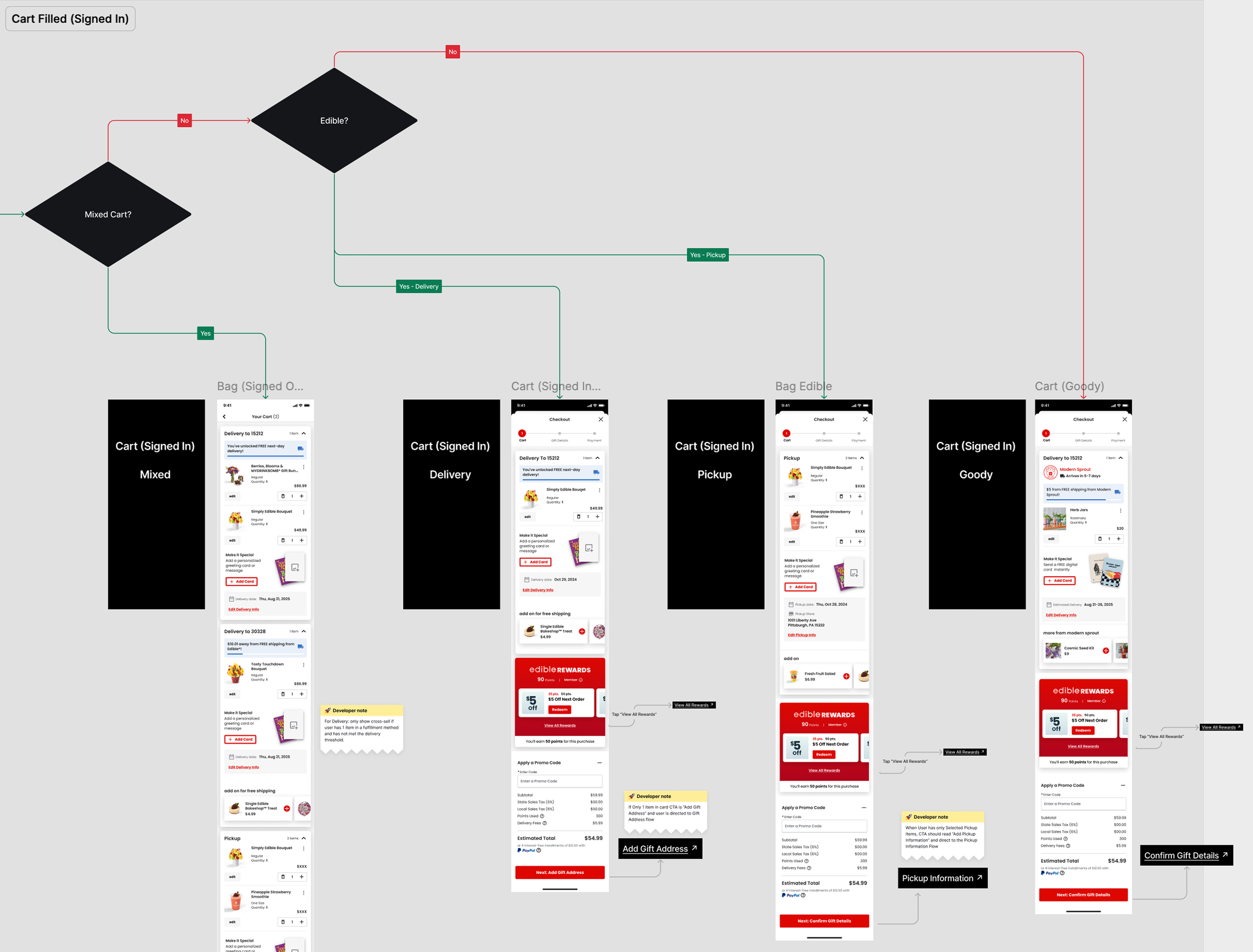 Explored and refined a new multi-cart experience with shipping, delivery and pickup options from Edible and partner brands