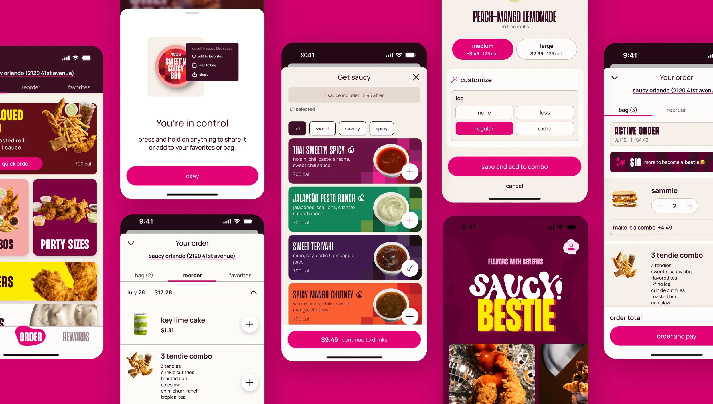 The ordering flow was designed around speed and confidence, though it was important for it to feel uniquely Saucy.