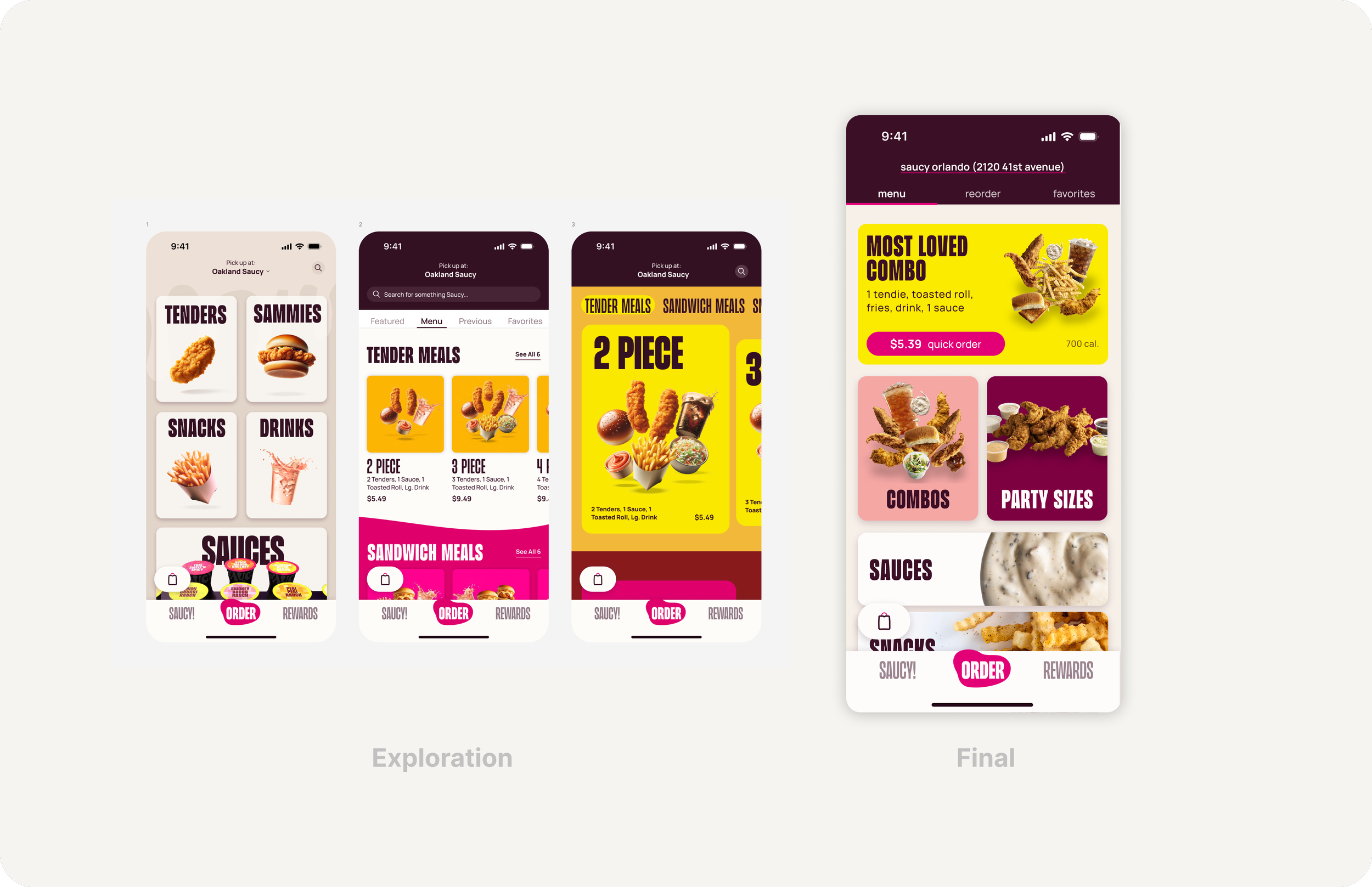 Needs to feel immediately recognizable as Saucy not traditional KFC.