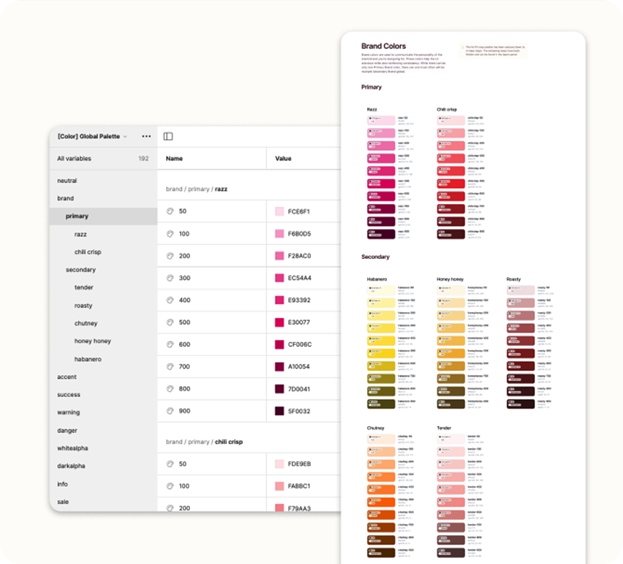 I mapped core brand colors to WCAG-compliant accessibility values and expanded the palette to support light and dark themes.